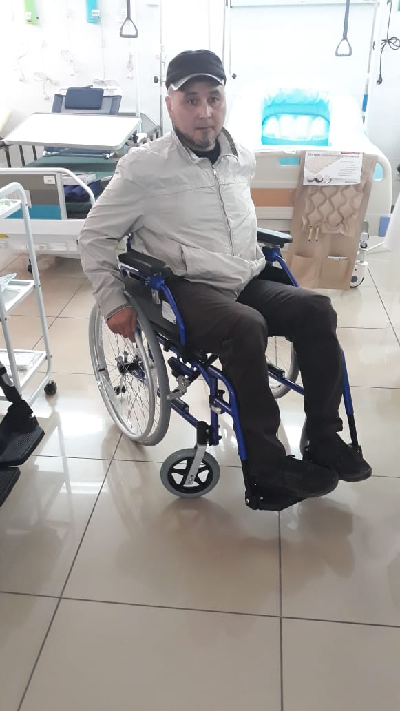 The aid was also rendered to Kanat as well. The man collected a small part of the money for the purchase of a wheelchair independently. And we made the deficient amount. We hope that the new stroller will give Kanat the opportunity for comfortable and free movement.